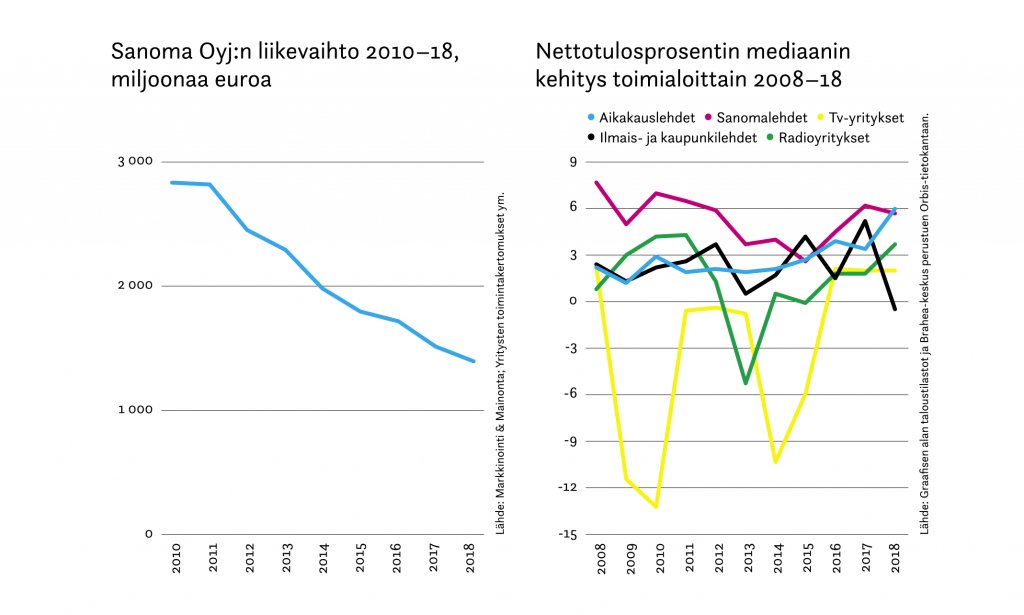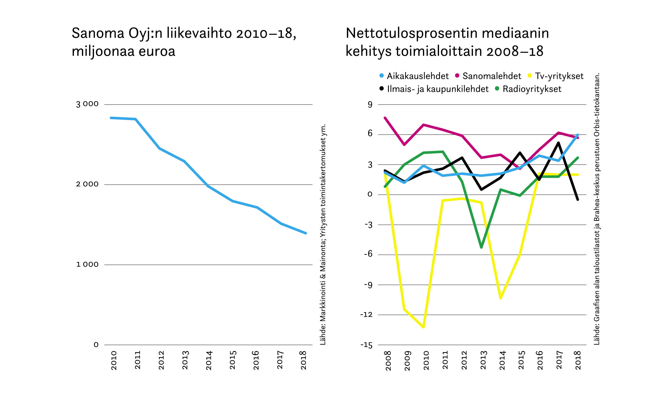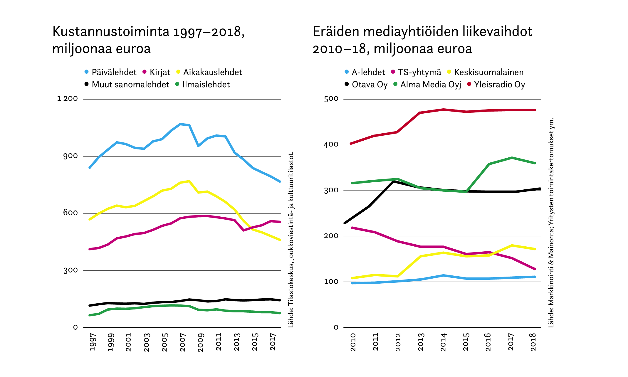 Vielä 2000-luvun alussa suomalaismediat tekivät hyvää tulosta. Lehtitalot luottivat päätuotteisiinsa – sanoma- ja aikakauslehtiin. Niihin oli helppo myydä mainoksia.