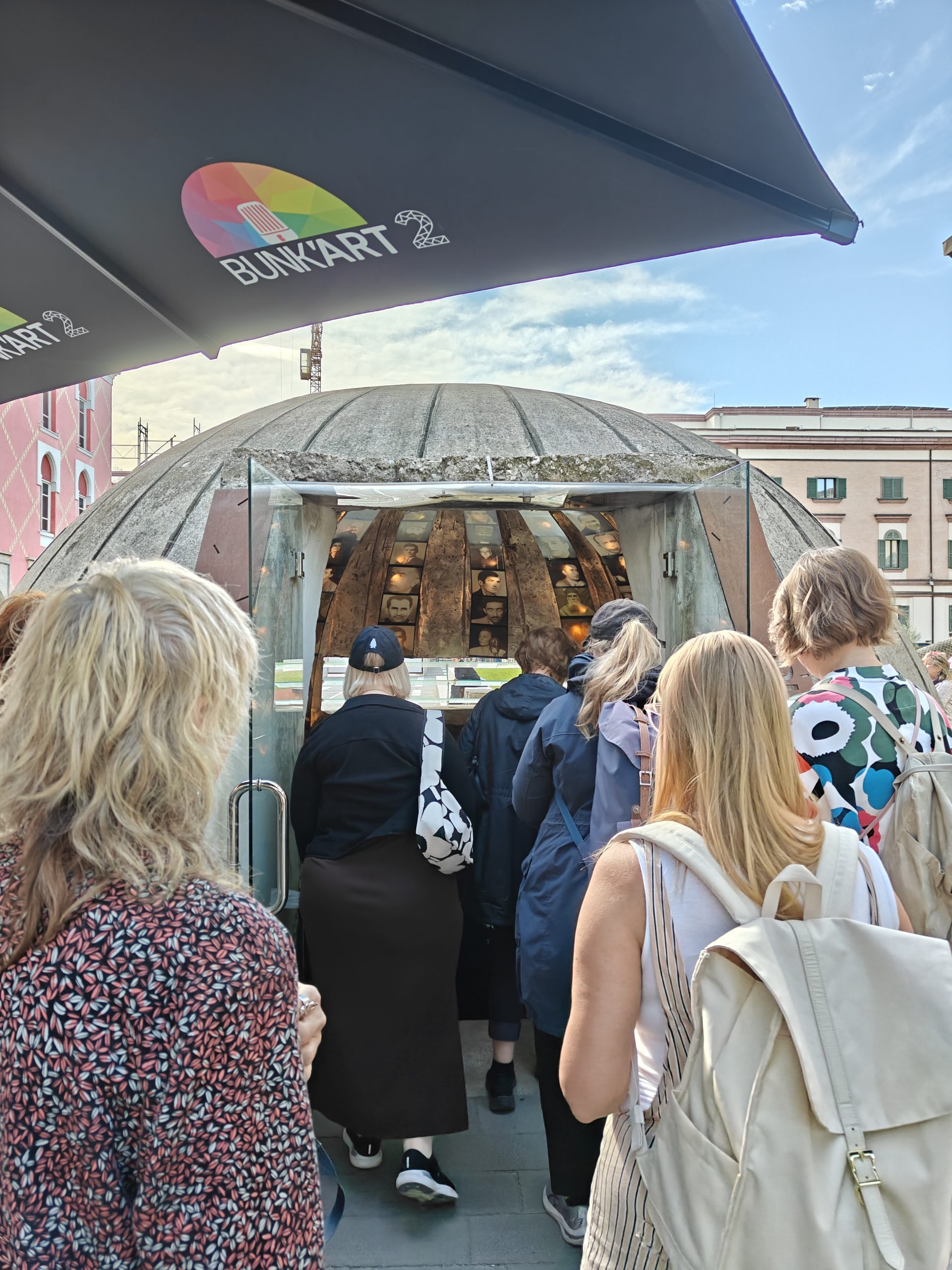Tiranan kunnostetun keskusaukion laidalla on rivi italiaistyylisiä 30-luvun rakennuksia, entisiä ministeriöitä. Niiden lomasta sukellamme Tiranan maanalaisen bunkkeriverkoston kuumuuteen. Kahlaamme kammio toisensa perään Albanian hallitsijoiden historiaa: