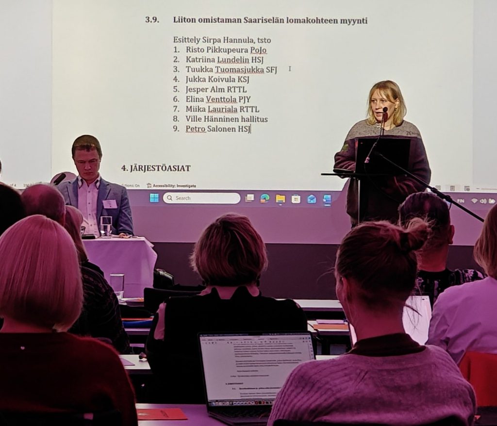 Torstaina kuultiin niin pidetyn jäsenedun puolustuspuheita kuin sopeutustoimenpiteitä ymmärtäviä kantoja. Otavamediaa edustava valtuutettu Katriina Lundelin (kuvassa) nosti esiin, että mökkilomat eivät ole ainoa tapa tarjota virkistystä. Hän kertoi HSJ:n joustavasta virkistysmallista, jossa kuka tahansa jäsen voi hakea lomastipendiä kotimaan kohteeseen. Mökkilomista lomastipendeihin siirtyminen on lähes kymmenkertaistanut hakijamäärän HSJ:ssa.