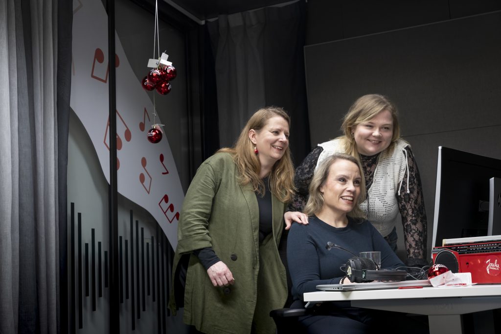 – Kun itse aloitin Jouluradiossa vuosia sitten, sitä oli niin ihana tehdä, ettei välttämättä huomannut pitää huolta työajoista. Nykyään ylitöitä tulee jonkin verran, muttei tolkuttomasti. Kukaan ei saa Jouluradion takia olla burnoutissa.